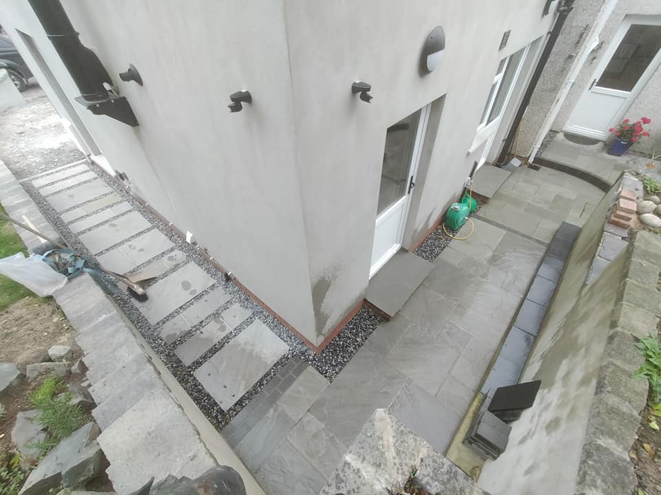 Liscannor Cladding & Dry Stone Walling – To enhance the rustic aesthetic, we used Liscannor stone cladding along the small front wall, complementing a dry stone wall previously built in the side garden. This combination enhances the property’s character while maintaining a cohesive look.