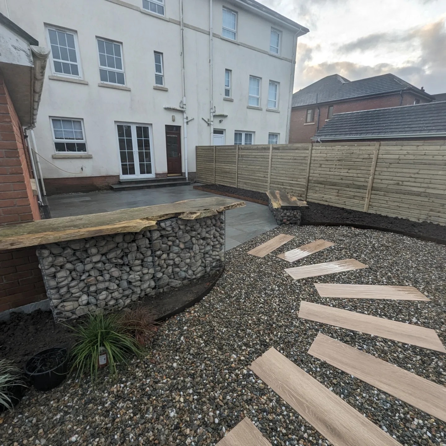 At Mooneys Landscape and Design, we specialise in high-quality landscaping that transforms outdoor spaces into beautiful, functional areas. This recent project in County Down is a perfect example of our expertise, combining premium paving, fencing, gabion baskets, and decorative stone to create a stylish and low-maintenance garden.