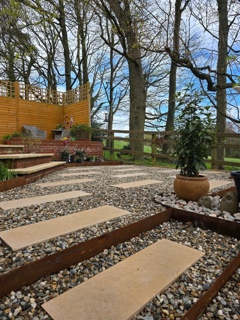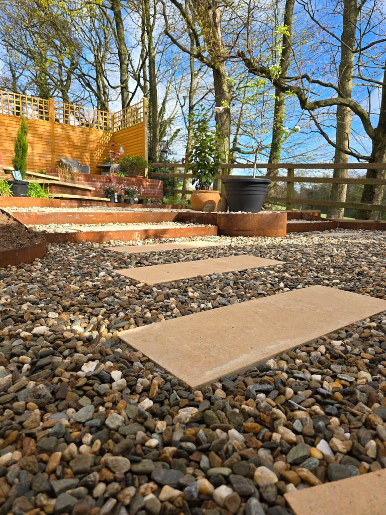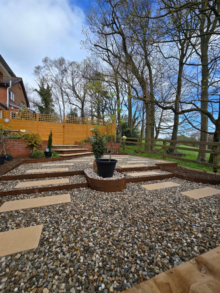 The completed project has completely redefined the property’s kerb appeal and usability. The rear garden is now a structured, modern space with two functional terraces, strong contemporary detailing and a surface finish that feels both premium and timeless. The corten steel elements add character and contrast while cleverly disguising unavoidable access points.