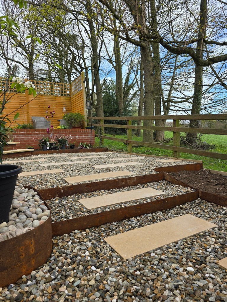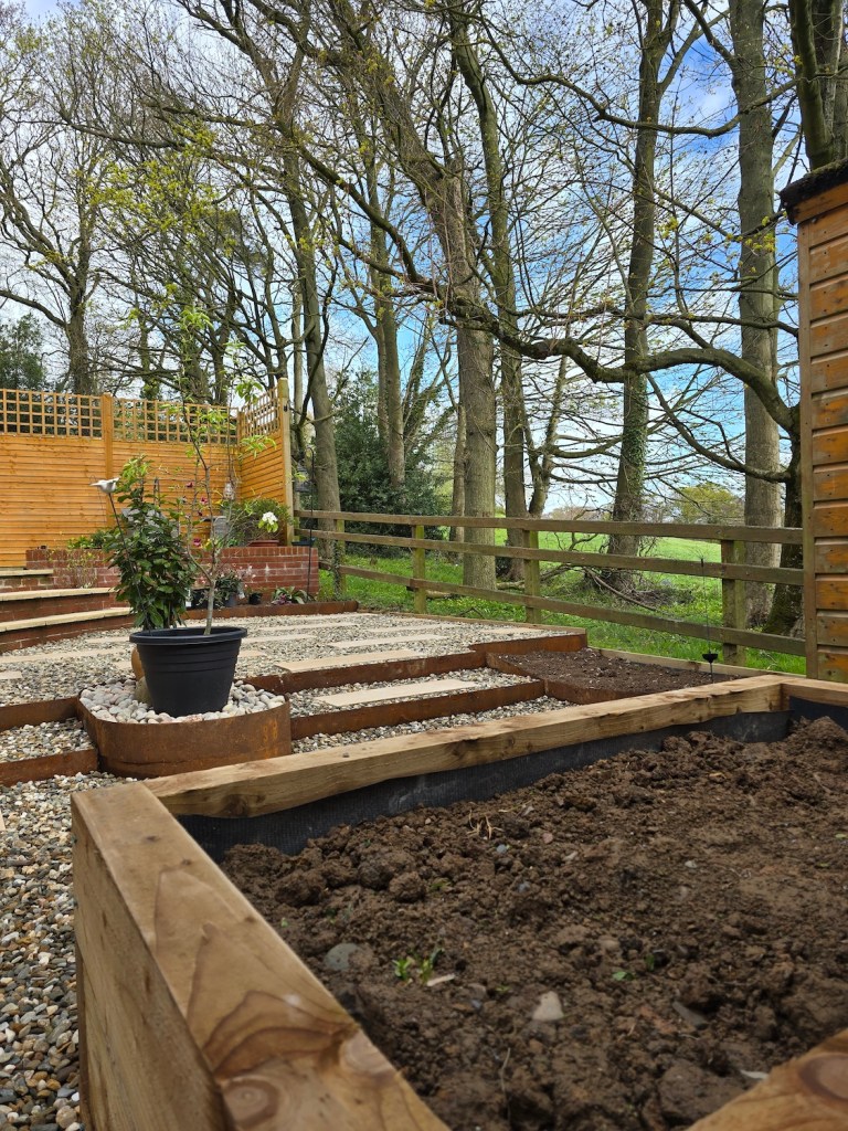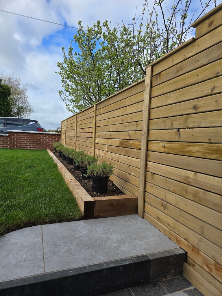 - Added a raised herb bed using sleepers, creating a practical and attractive finishing detail