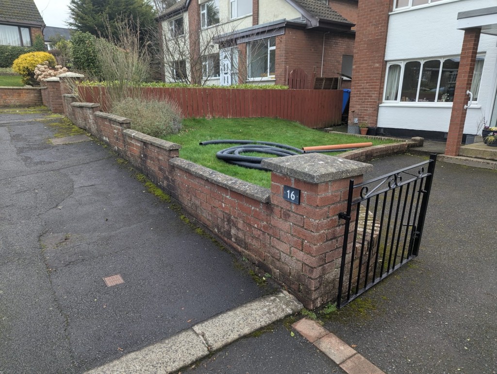 At the front of the property, the existing walls had become tired and unstable, with sections already failing. The front space also lacked a natural flow, particularly around the corner leading to the side of the house.